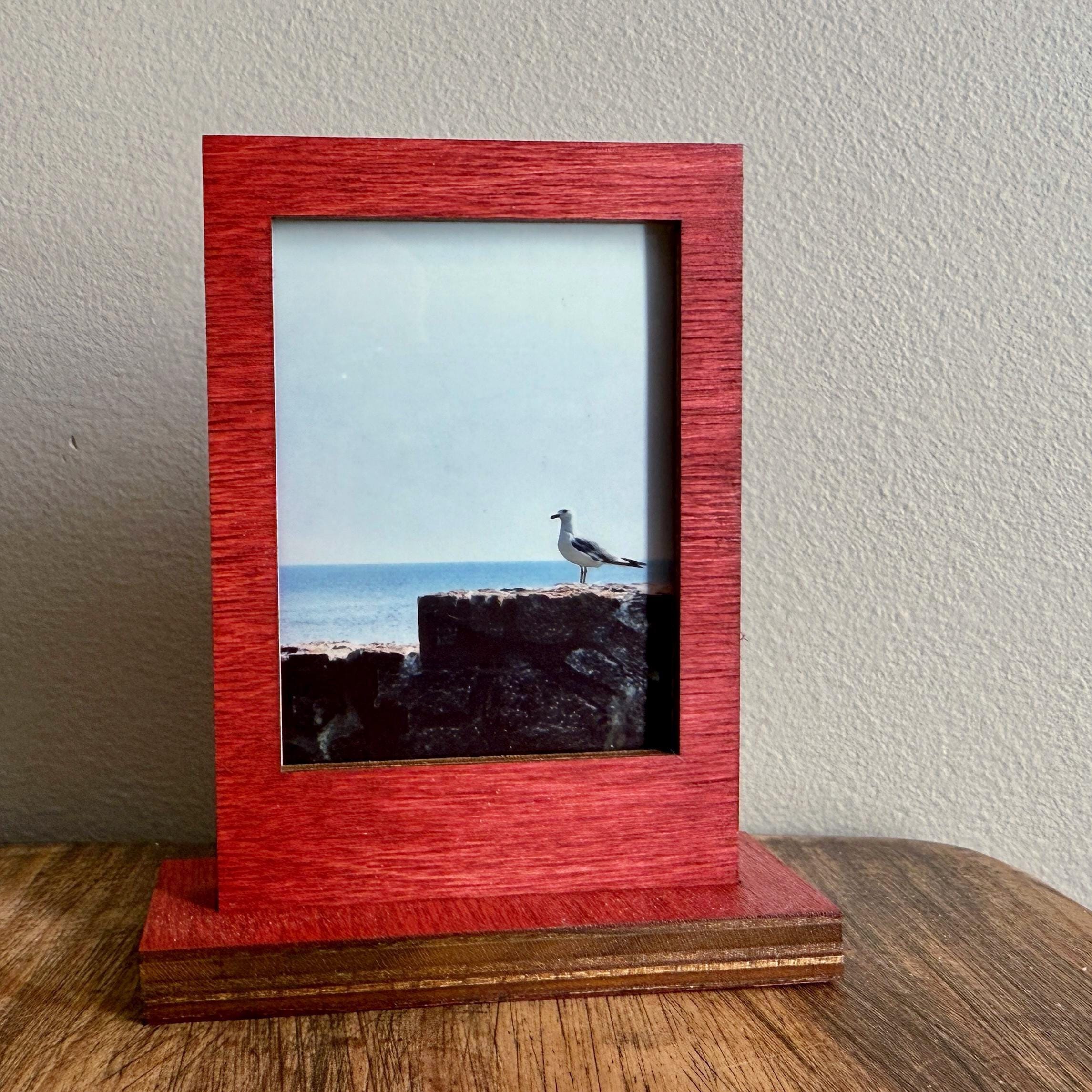 We have taken our custom designed, laser cut, drop-in style frame which perfectly displays Instax Mini photos (3 3/8" x 2 1/8") and added a laser cut Stand.