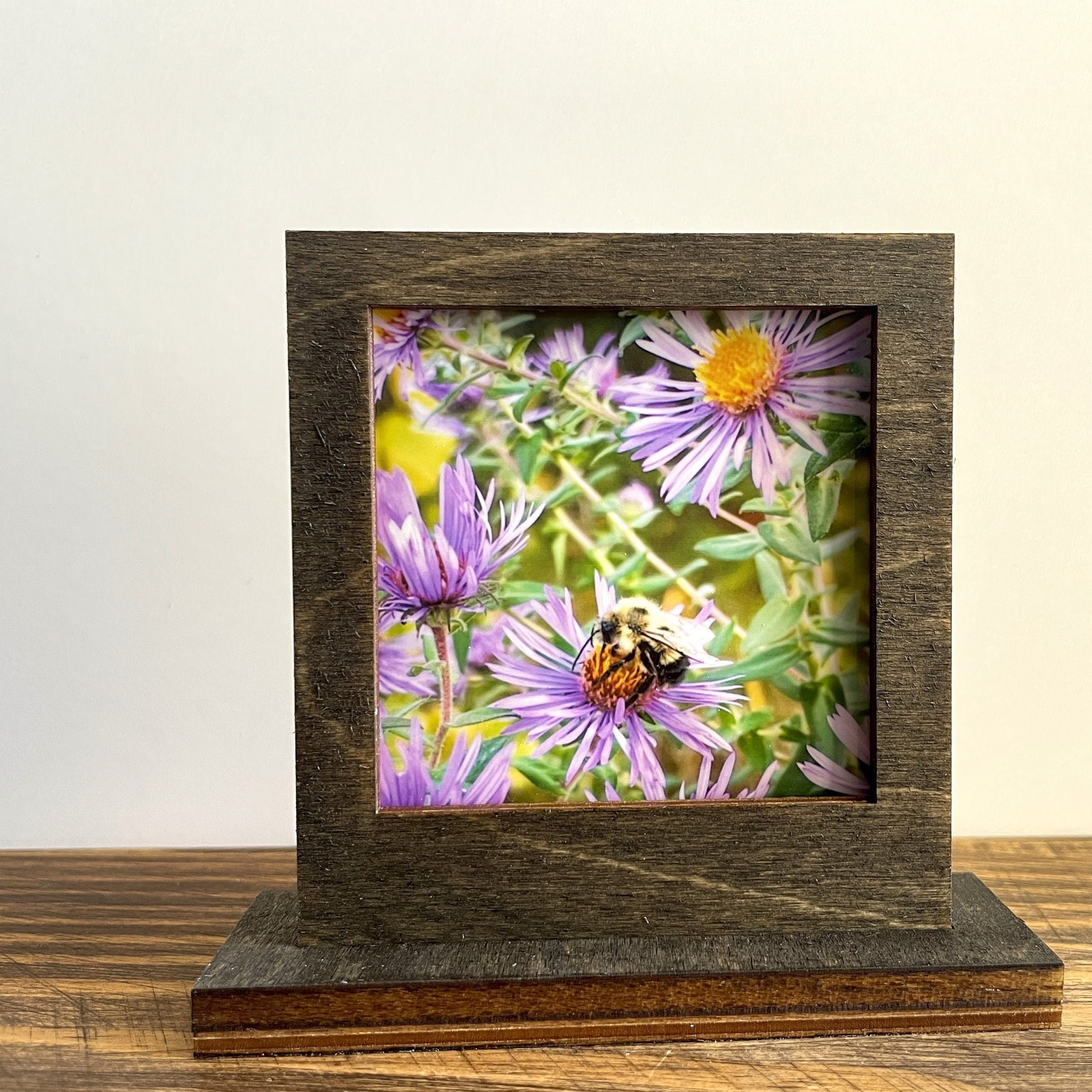 Our frames and stands are made from layers of quality 1/8 " Birch. Frames measure approx. 3.5" tall x 3" wide.