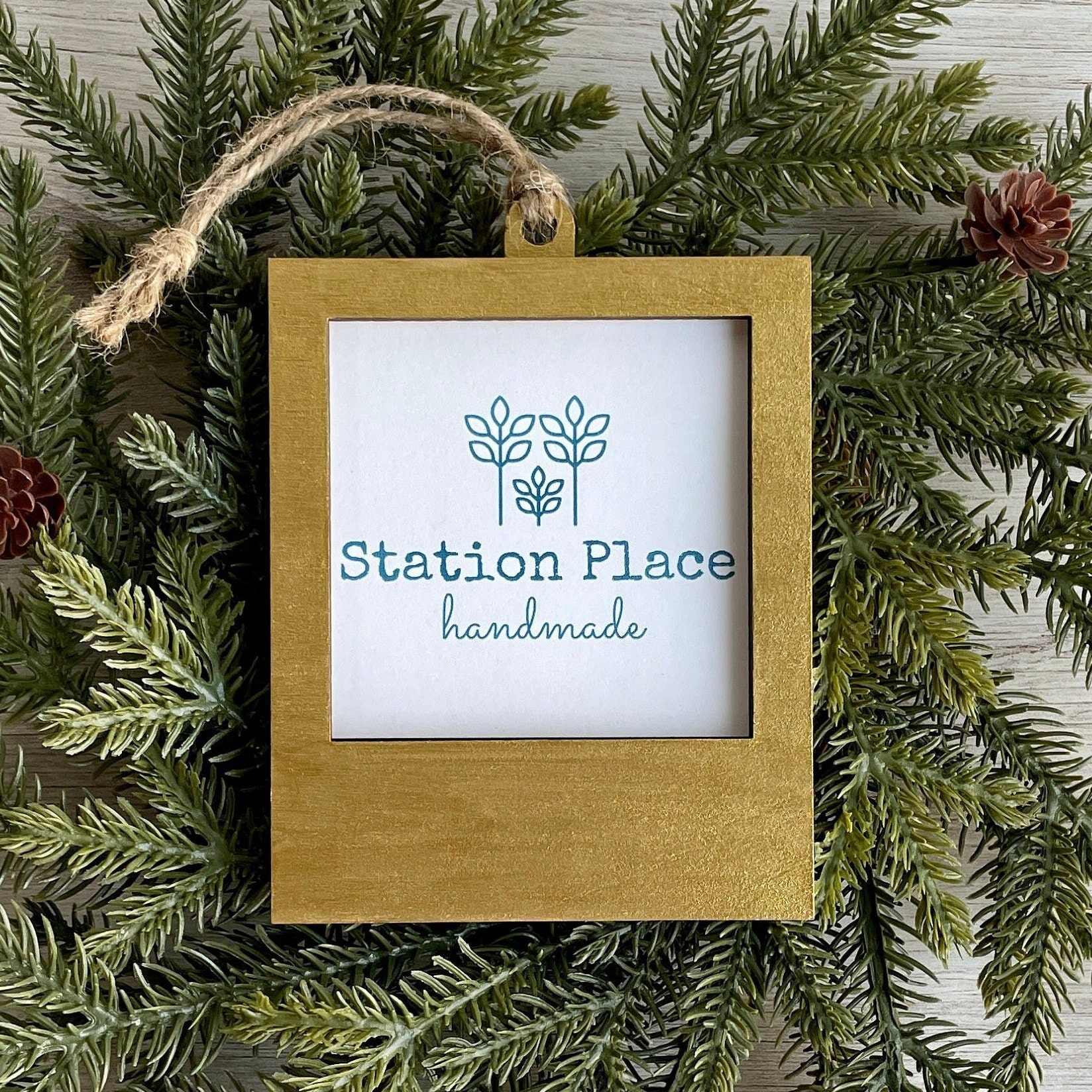 We've custom designed and laser cut these drop-in style frame ornaments that perfectly display Polaroid photos (Polaroid SX-70, 600 and i-Type film).
