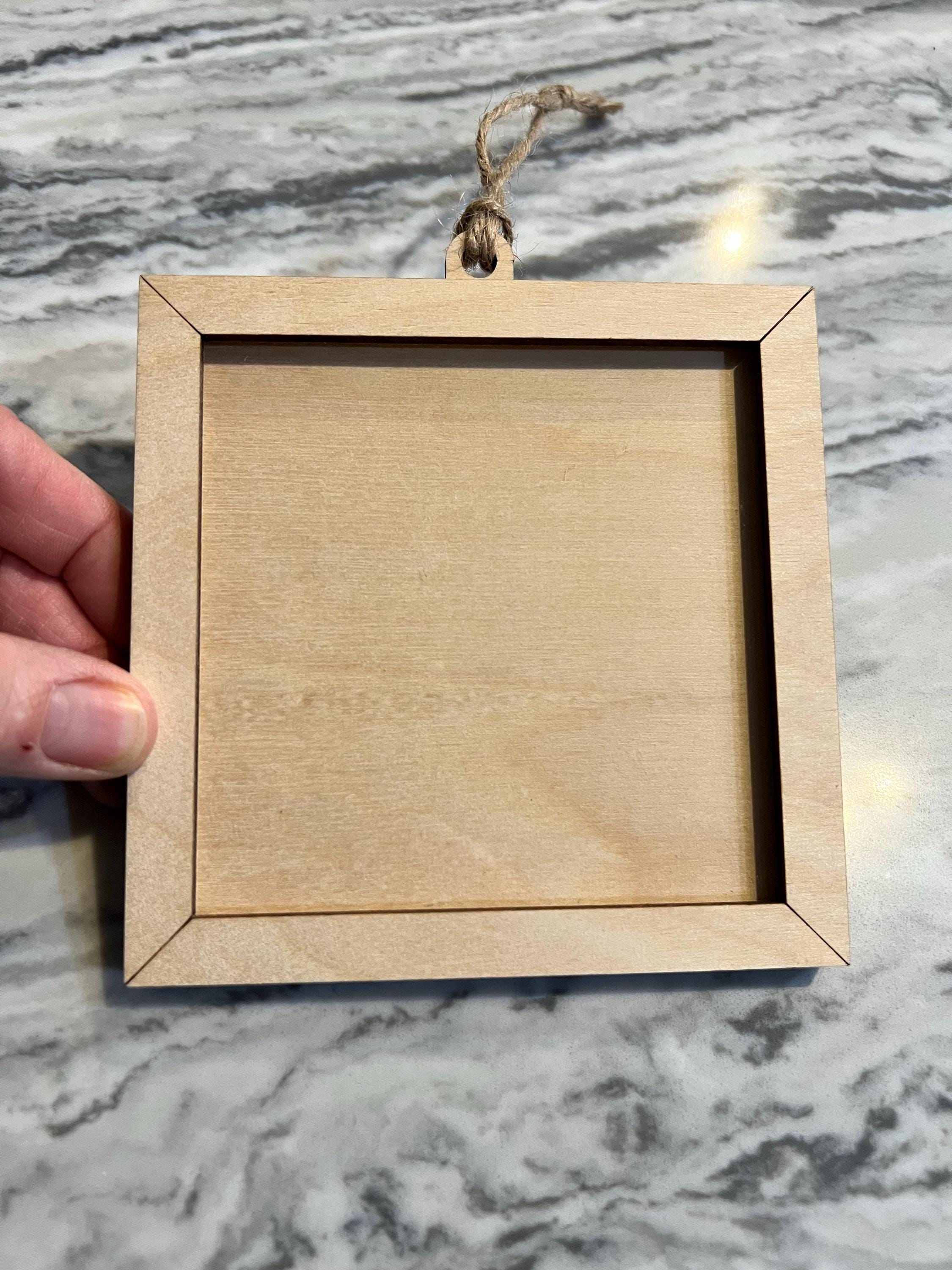 This 4x4 frame ornament has been custom designed and laser cut by us and is made with the same high-quality Birch that we use for all of our frames and ornaments.