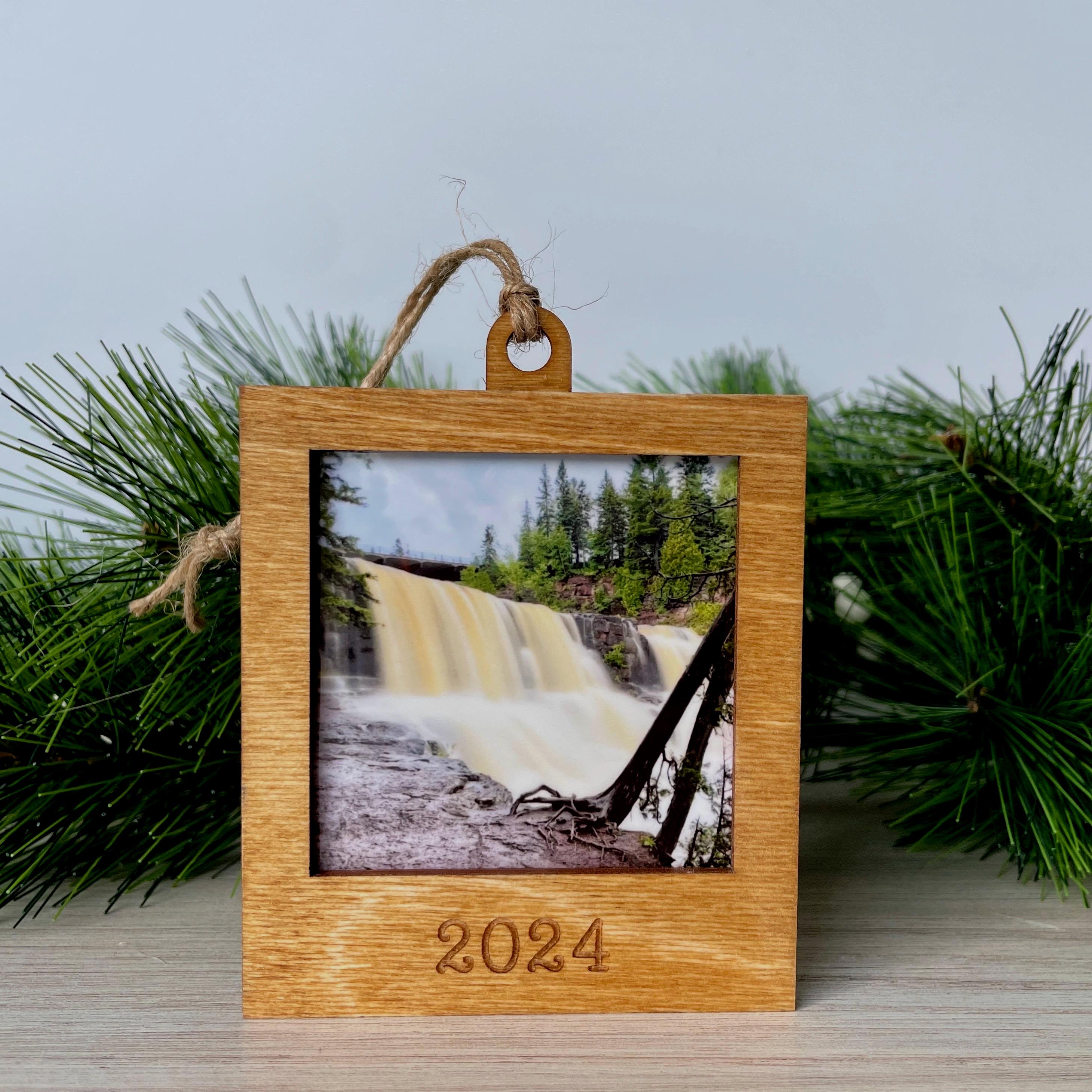 We've taken our custom designed and laser cut drop-in style frame ornaments that perfectly display Instax Square photos (measuring 2.8" wide by 3.4" high) and will engrave the year of your choice!