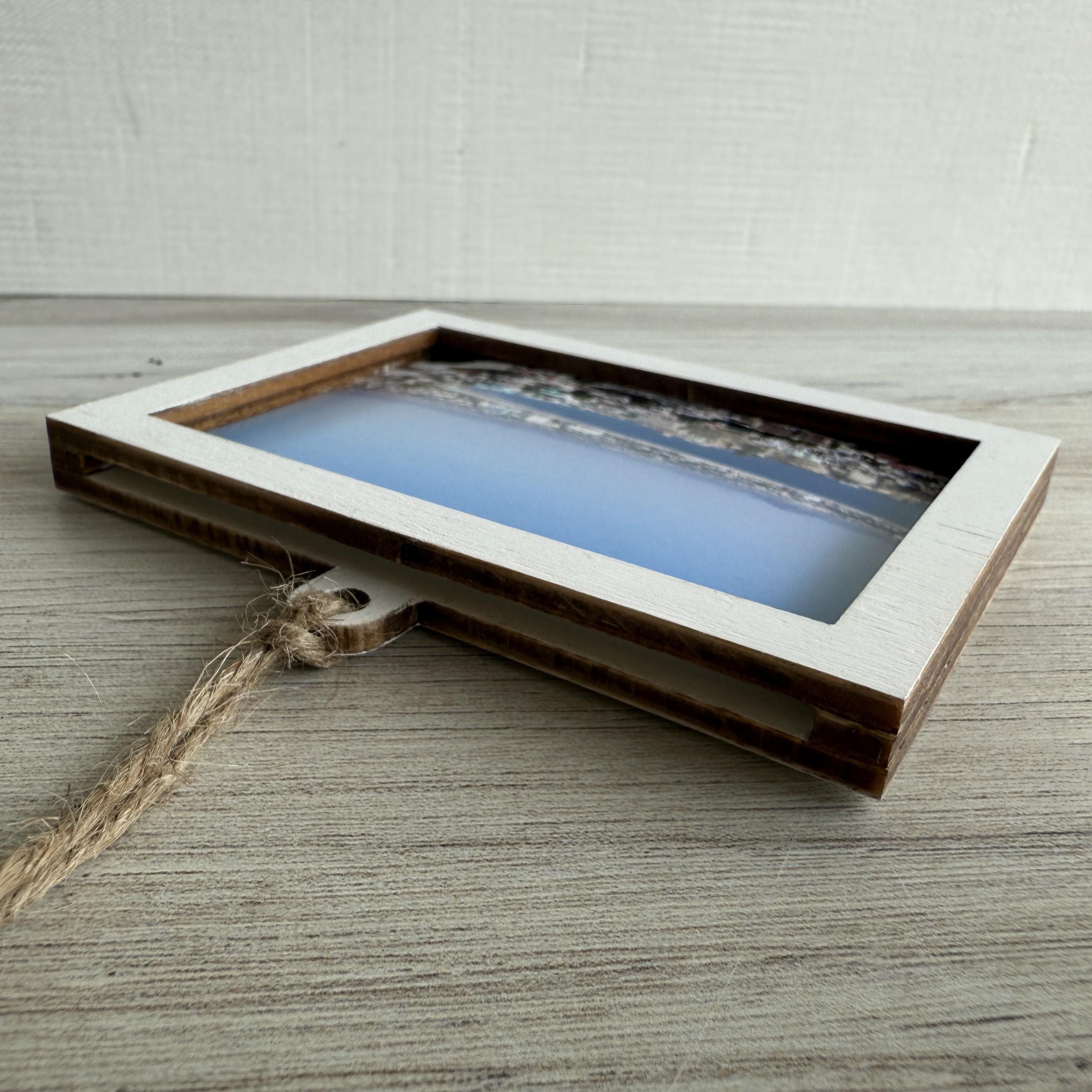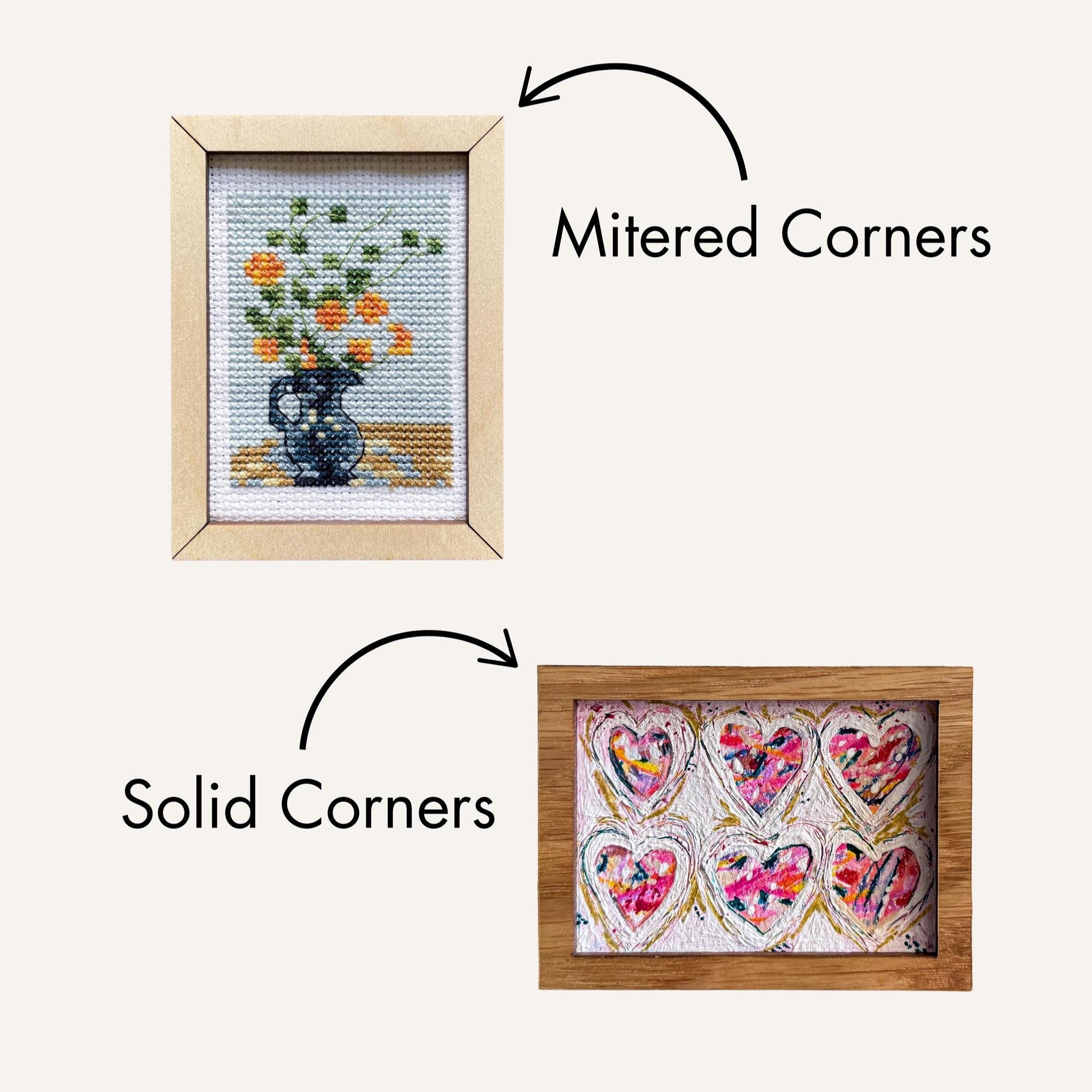 Our custom designed, laser cut, drop-in style frames perfectly display not only wallet size photos, but many customers also display artwork and cross-stitching/embroidery in our frames.