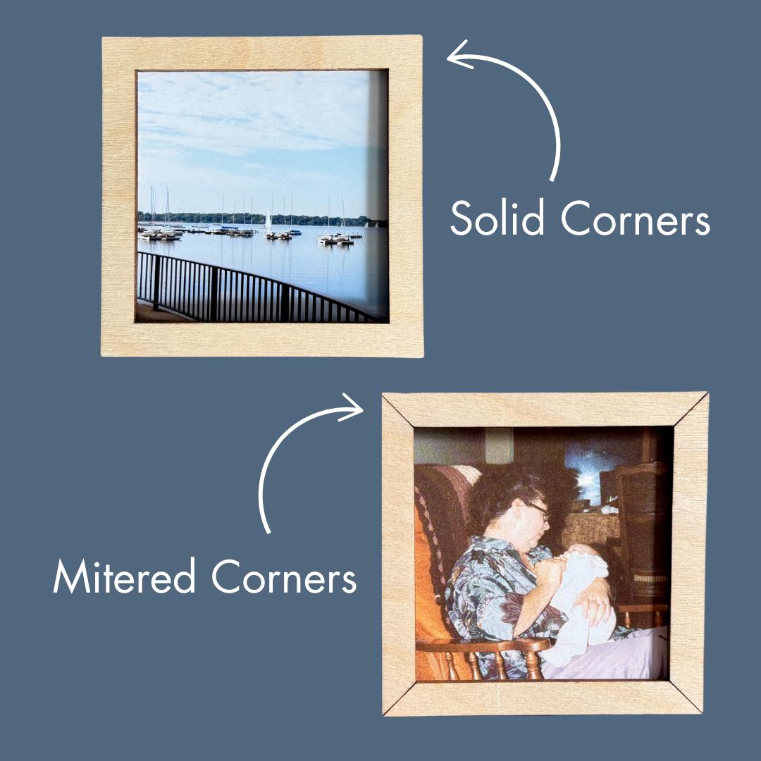 *Choose either solid corners or mitered looking corners when choosing the Classic Style frame, see photos for comparison. Instant Style frames are only available with solid corners.