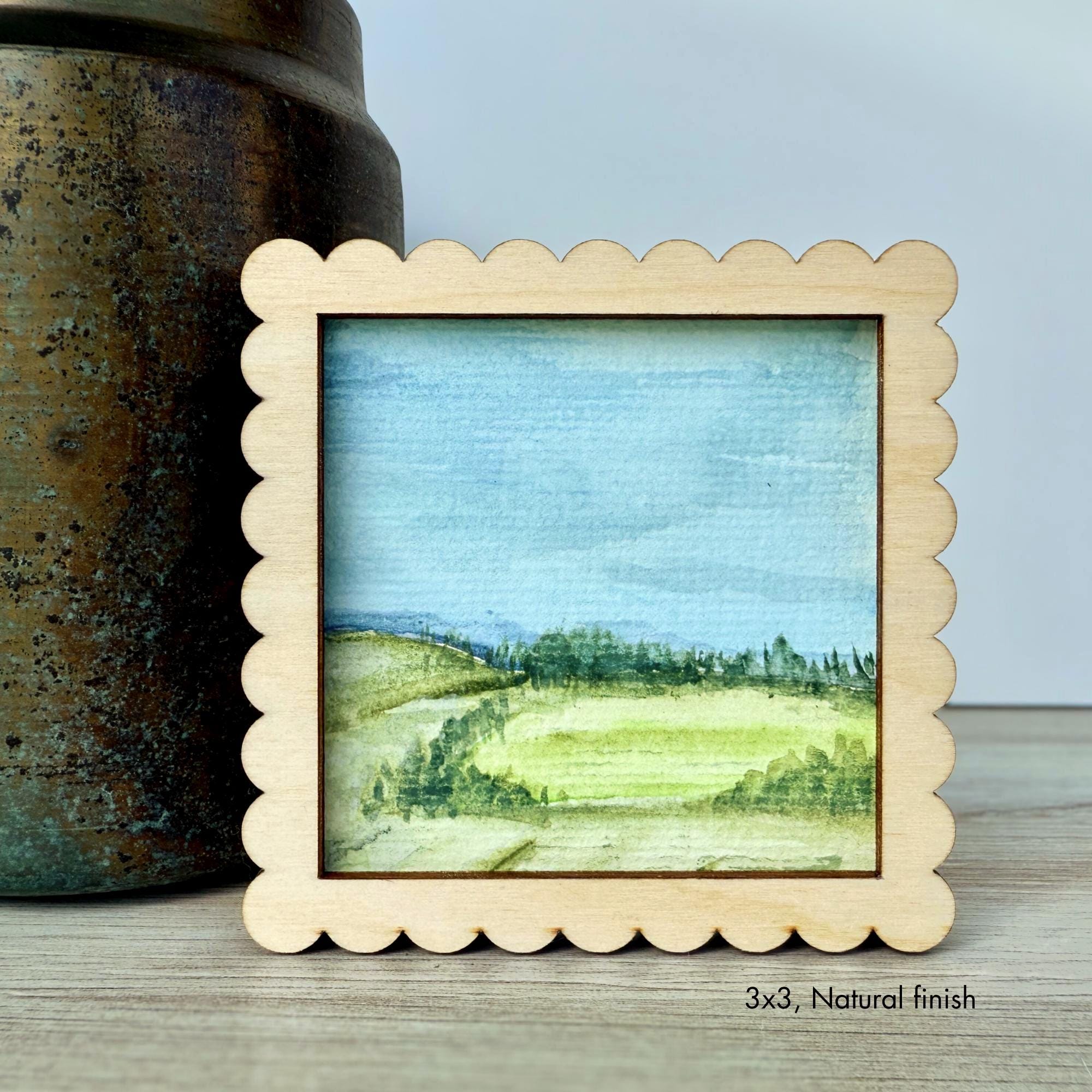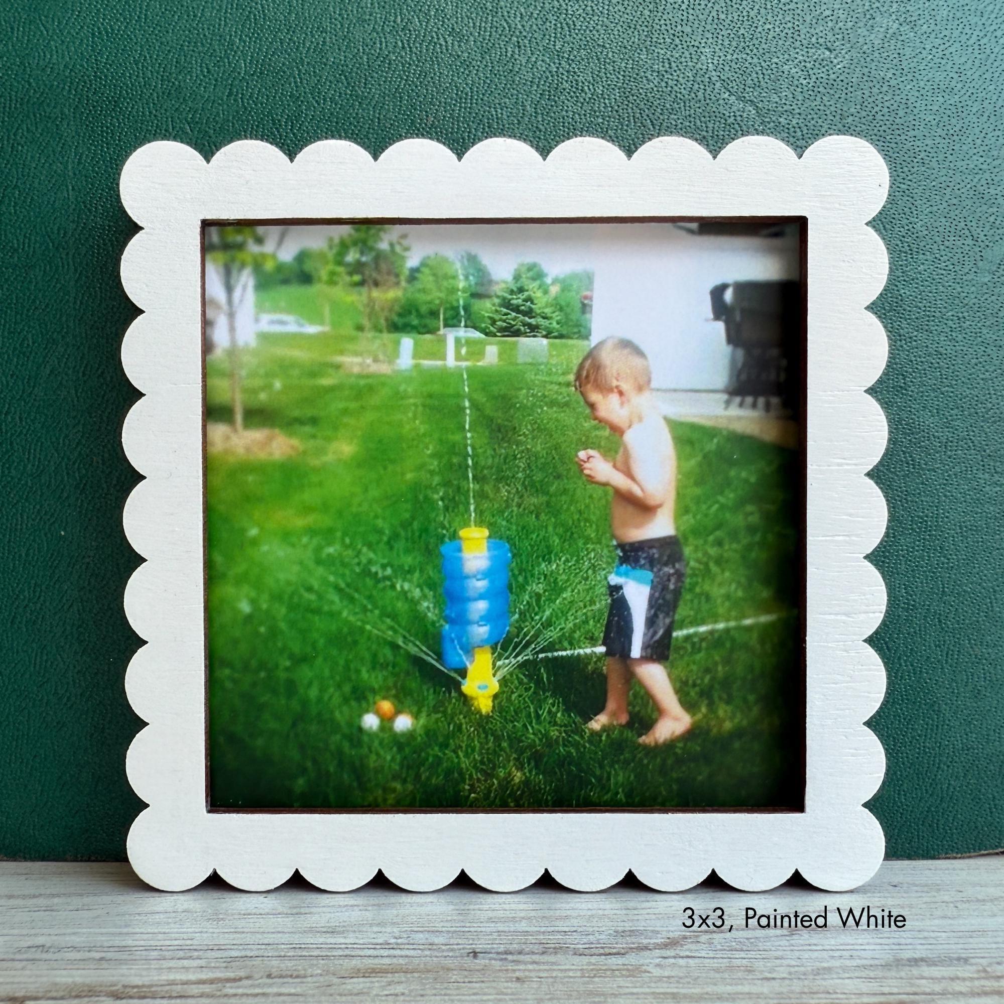 Meet the Scalloped Frame family- we've customized our drop in style frames with a trendy scalloped edge. Available to fit photos or art in 2 sizes, either standard wallet sized, 2.5"x3.5" or 3"x3" square.