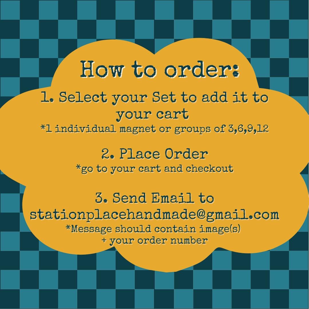 **Once you place your order, you will need to send, via e-mail (stationplacehandmade@gmail.com):